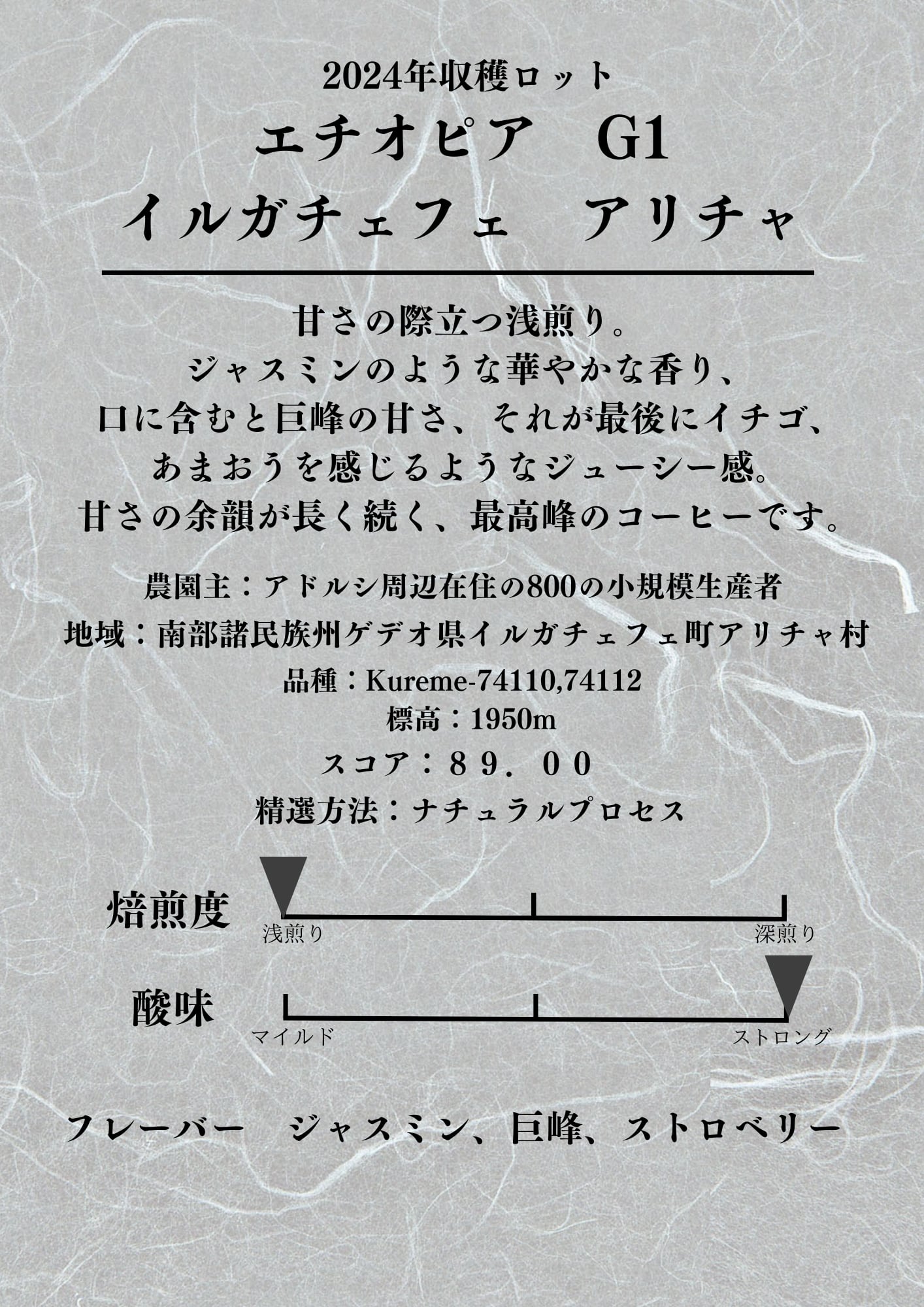 【豆】200g/エチオピア/G1 イルガチェフェ/浅煎り/クリックポスト