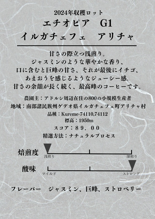 【粉】200g/エチオピア/G1 イルガチェフェ/浅煎り/クリックポスト